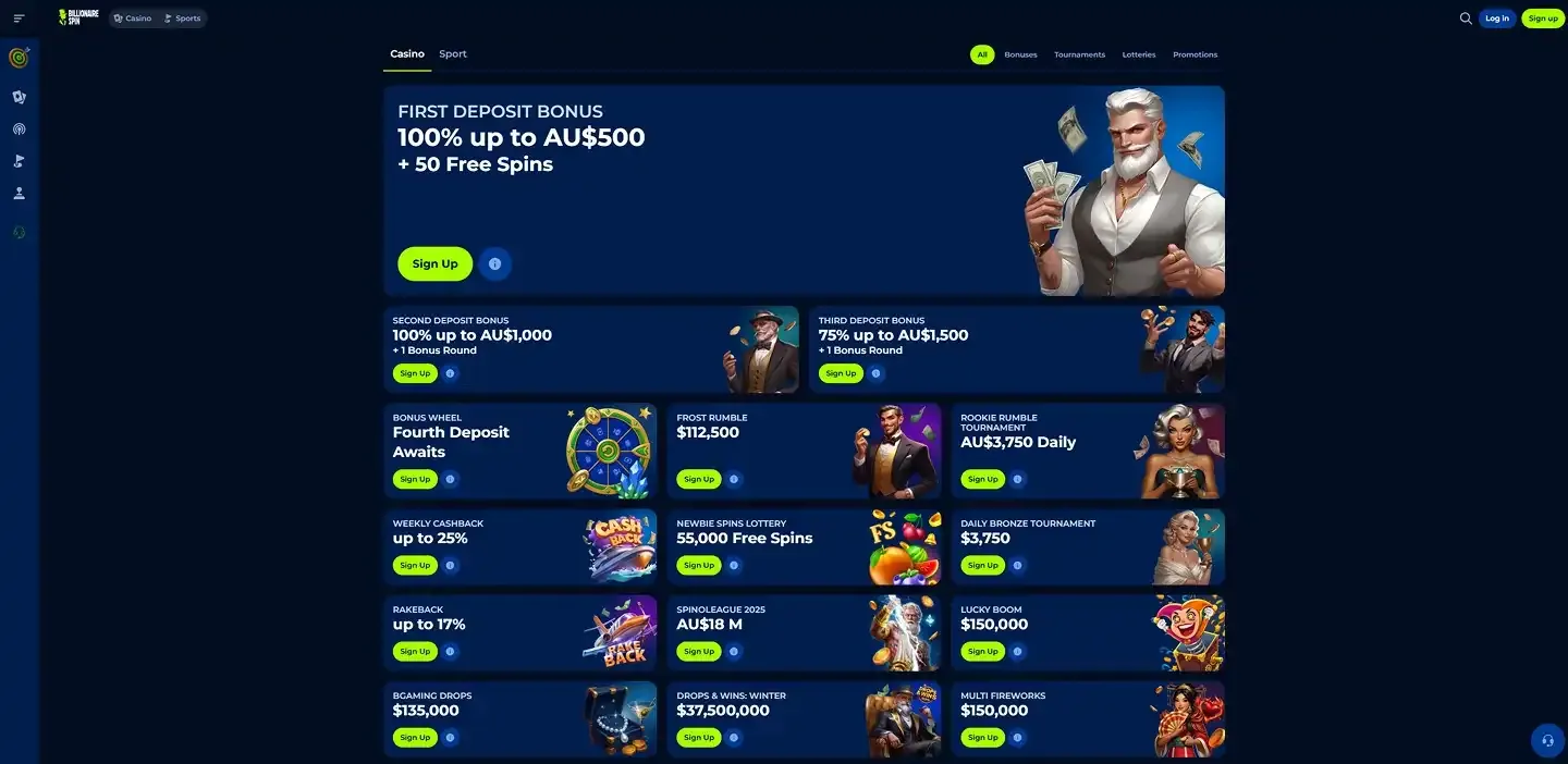 Billionaire spin Casino Promotionen & Boni